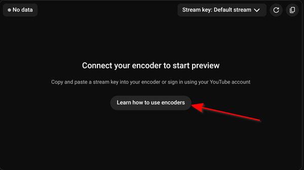 9. Klikk på Learn how to use encoders, og kopier stream-nøkkelen (stream key).