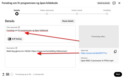 5. I feltet Description, legg til en beskrivelse av videoen.