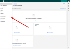 To record other facts such as Immunizations, Allergies, orders, see results click the "hamburger menu" in top left corner and pick from the list on the left