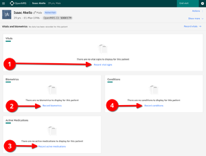 You can record 1. vital signs, 2. biometrics, 3. active medications and 4. conditions