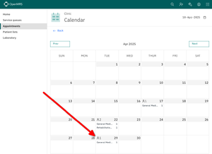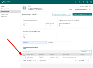 Click on the appointment for Isaac Akello we scheduled for 29. April 2025.