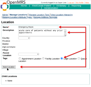 Go to http://malinux.no:8080/openmrs/spa and select Emergency Room from the list.